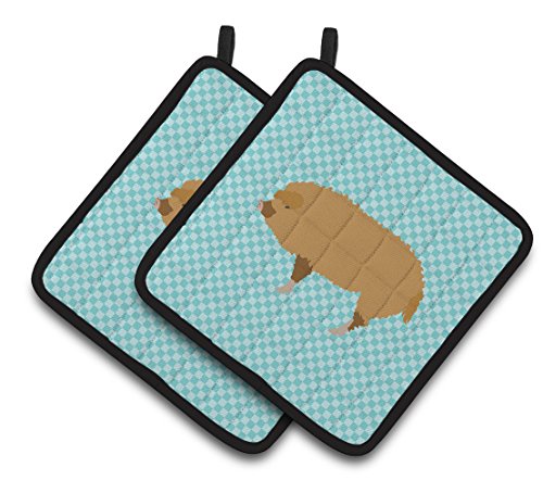 Caroline's Treasures BB8108PTHD Hungarian Mangalica Pig Blue Check Decorated Pot Holder, 7.5" x 7.5", Multicolor