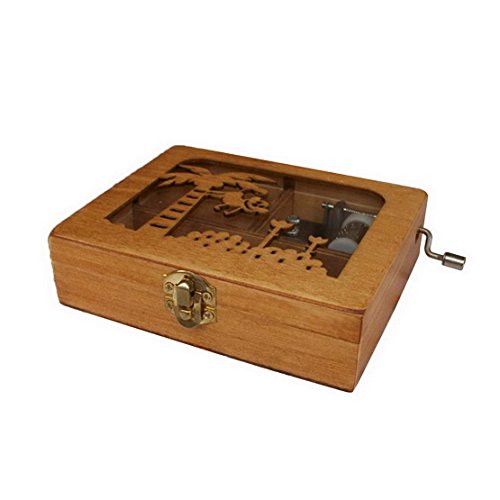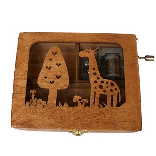 The music boxes approximately Dimensions: 4.7" x 1.4" x 3.6" (LxWxH) and they're made of natural wood