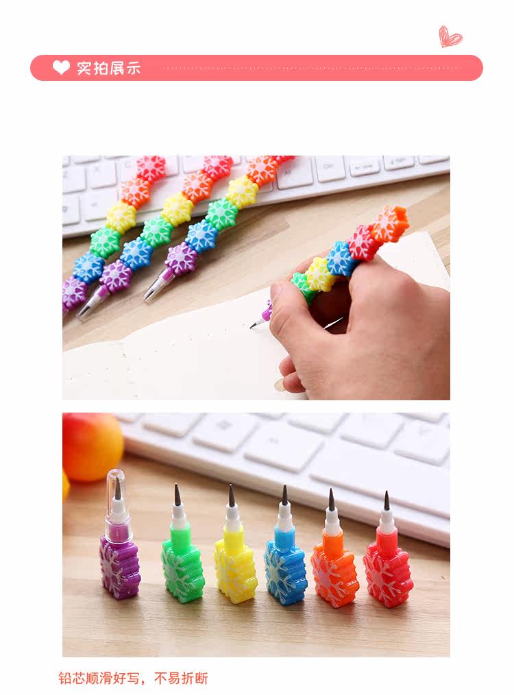 儿童铅笔可爱六节雪花铅笔创意卡通小学生学习办公文具用品奖励品