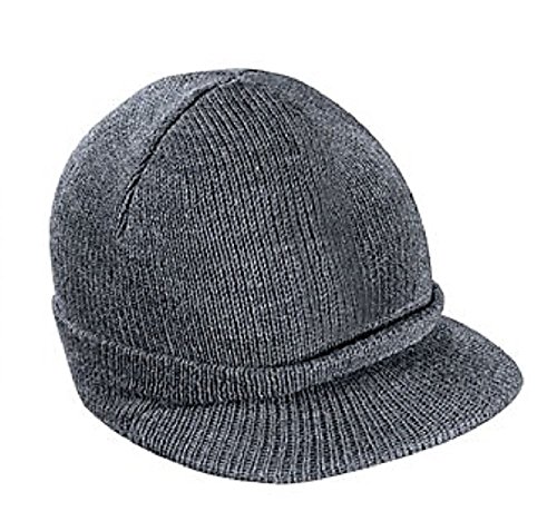 -. Title : District Threads Beanie Hat with Bill Knit Cap - Heather Gray