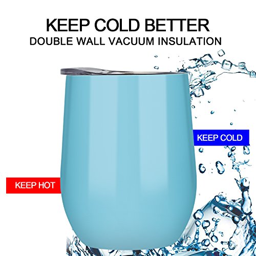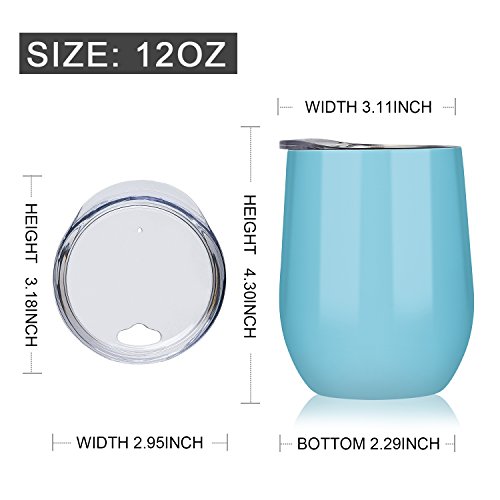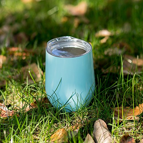 DOKIO 12 Ounce Seafoam Wine Cup Stemless Stainless Steel Double Wall Vacuum Insulated With Crystal Clear Lid Great For Ice And Hot Drink Mug Coffee Cup For Home Office Outdoors