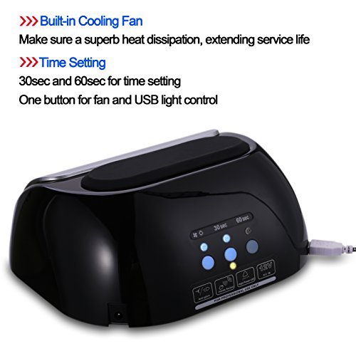 Material: Metal ABS Time Setting: 30sec, 60sec and const Wattage: 48W Voltage: 110V ( not apply to 220V ) Output Voltage: DC 12V The USB Led Number : 15