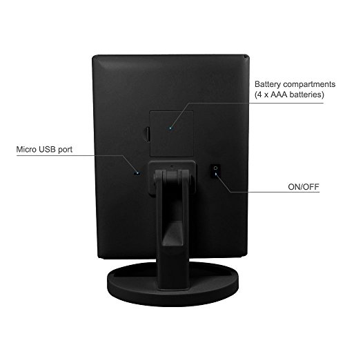 Built in 21 LED lights, which is adjustable brightness and soft light, on/off switch, bright enough to make up without disturbing others when lights on. (Black). A 10X Tabletop Cosmetic Mirror as a Gift.