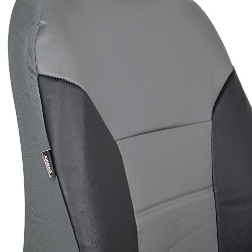 Motor Trend Black/Gray Two Tone PU Leather Car Seat Covers - Classic Accent - Premium Leatherette - Front Pair