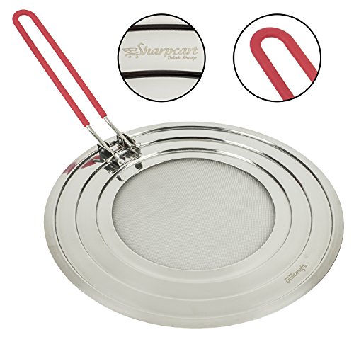 • ✅ BENEFITS & FEATURES: This splatter screen is made of high quality stainless steel frame and mesh with folding silicone handle, easy to hold. Fits multiple sizes of pots and pans up to 12 inches in diameter. It will last for years. You won’t be disappointed.