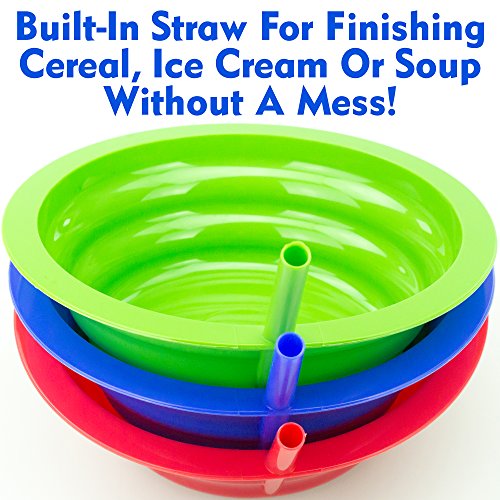 MORE FUN & LESS MESS THAN AVERAGE CEREAL BOWLS! Our bright colored sippy bowls add a splash of color to the kids' tableware for breakfast. Kids love it because it's unique. Moms love fewer spills.