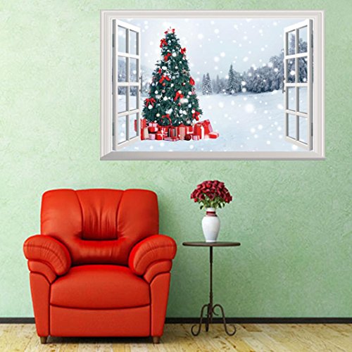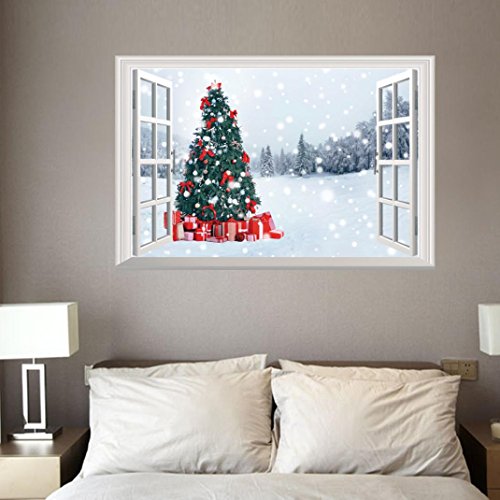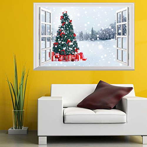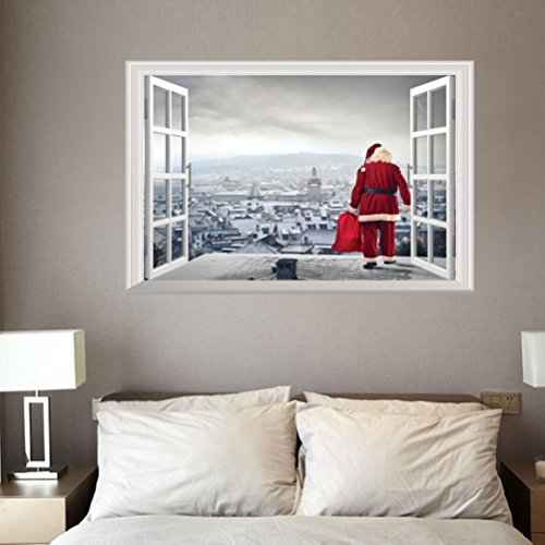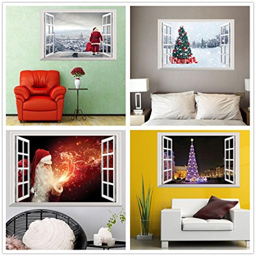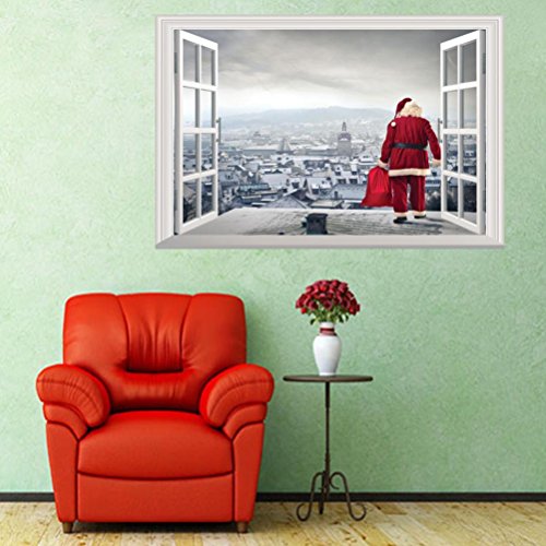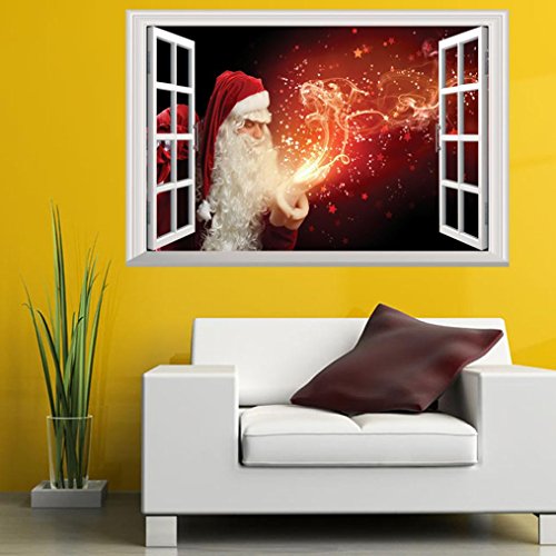 -. Title : Christmas Wall Stickers Decoration, 3D Removable Wall Mural Decals Decorative Xmas Santa Claus Snowman Elk Vinyl Wall Stickers Decal Decor by Staron