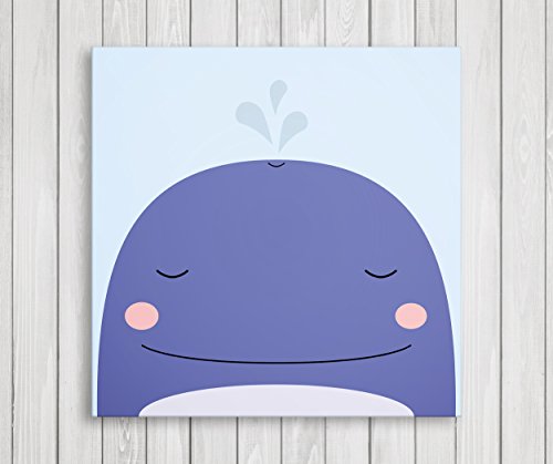 Cute Little Animals Nursery Wall Decor, Baby Room Canvas Art (11"W x 11"H, Whale)