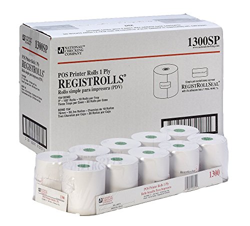 NCCO Register Rolls - POS Kitchen Paper – 1 Ply White Bond – 3” x 165’ – (1 Pack of 10 Rolls) – Item 1300SP