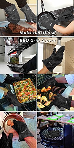 - SUPERMAN HANDS - Silicone Gloves with proper protection, convenience - Flip-over meat on the grill, bake in your stove, boil corn on the stove. With ultra-flexible 5 fingers anti-slip grip makes it griller's and baker's choice. RISK-FREE INGREDIENTS: BPA-free, FDA-approved 100 % pure food grade silicon, and are guaranteed not to leech chemical substance or toxicants, even within heat energy! They will not mold, mildew, or absorb smells. Size:27.5*17.5*2.2CM.
