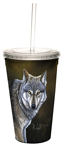 Tree-Free Greetings 35736 Jeremy Paul Classic Wolf Double-Walled Cool Cup with Reusable Straw, 16-Ounce