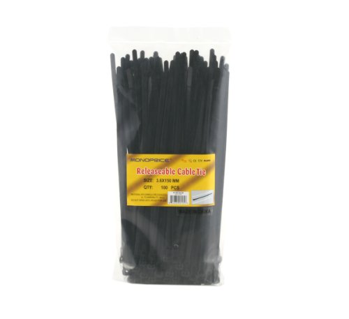 Monoprice Releasable cable tie 6 inch 50LBS, 100pcs/Pack - Black
