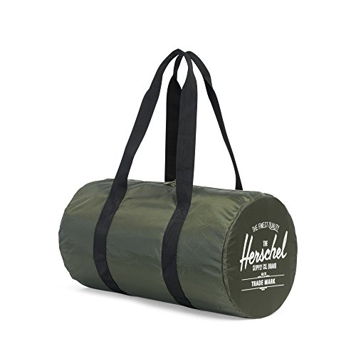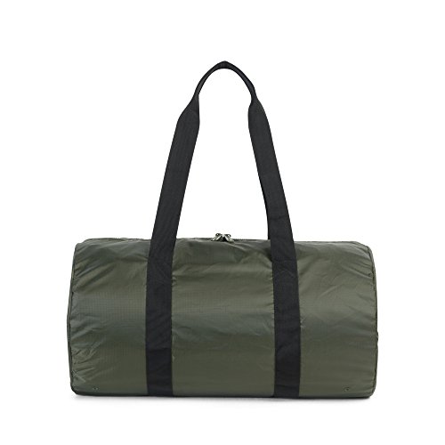 The cylindrical Packable Duffle is constructed with lightweight ripstop and collapses into its own internal pocket for easy storage.