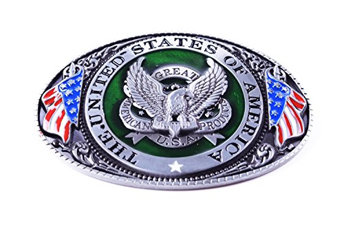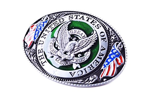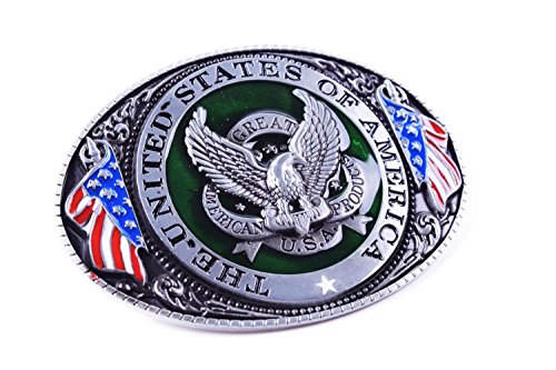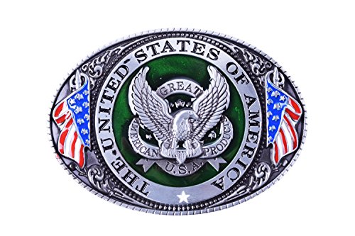 Binding : Apparel Product Description Product presentation: This USA with Eagle belt buckle is mainly make by Zinc Alloy and nickle free, perfect workmanship. It's harmless to human's skin. It's very cool and symbolize courage. All kinds of young peoples and middle-aged use will be nice. In addition, we provide a great-looking package for you. Very suitable for gifts or for personal use. Product size: 4.6 x 3.2 x 1.1 Inches/Fits Standard 1.5" Snap on Belts Delivery and after-sale: When you order it, you can get it in 8~18days. We also will provide a very high quality after-sales service. 0