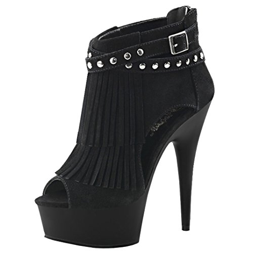 Womens Black Suede Ankle Boots Studded Fringe Booties Cut Outs 6 Inch Heels