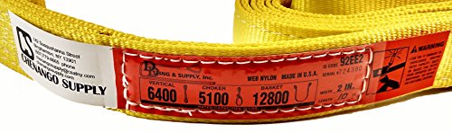DD Sling (USA Made). 2" wide X (4' to 20' lengths) in Listing! 2 Ply Twisted Eye, Nylon Lifting Slings, Eye & Eye, Heavy Duty (900 webbing), 6,400 lbs Vertical, 5,100 Choker, 12,800 Basket Load Capacity (2inX10ft)