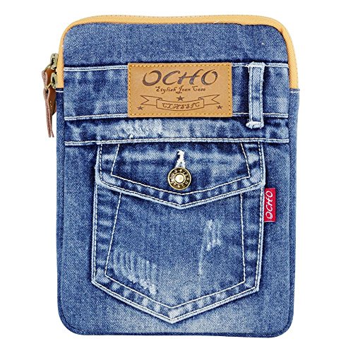 Universal Case for 7 8 inch Tablet Stone Washed Jean Denim Style Sleeve for iPad mini 2 4, Nexus 7 and more
