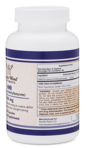 -. Binding : Health and Beauty -. Brand : Double Wood Supplements -. EAN : 0685349903245 -. Feature : 100% MONEY BACK GUARANTEE - We don't want anyone to feel ripped off and provide a no questions asked money back guarantee. / MADE IN THE USA AND TESTED FOR PURITY - Our HMB Supplement is manufactured right here in the USA and is tested for safety and purity by vitagen labs. / REDUCE MUSCLE LOSS - HMB (free acid) capsules at 1000 mg have been shown to reduce muscle loss when operating a caloric deficit. / IMPROVE POWER OUTPUT - HMB at doses higher than 1000mg have been shown to assist in strength training and power output. Works best when taken along with Creatine. / INCREASES PROTEIN SYNTHESIS - HMB increases protein synthesis, aiding in the growth of new muscle tissue -. IsAdultProduct : 0 -. Label : Double Wood Supplements -. Manufacturer : Double Wood Supplements -. MPN : DWHMB -. PartNumber : DWHMB -. ProductGroup : Health and Beauty -. ProductTypeName : HEALTH_PERSONAL_CARE -. Publisher : Double Wood Supplements -. Studio : Double Wood Supplements -. Title : HMB Supplement 1000mg per Serving, 120 Capsules -. UPC : 685349903245