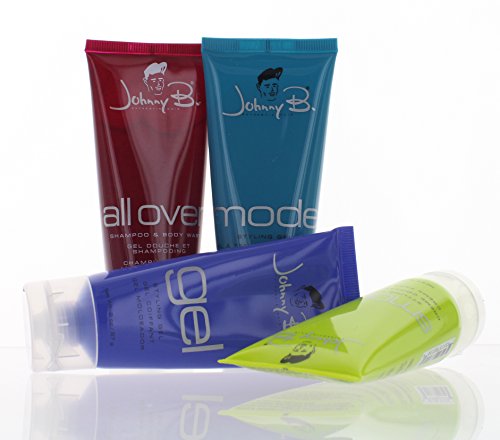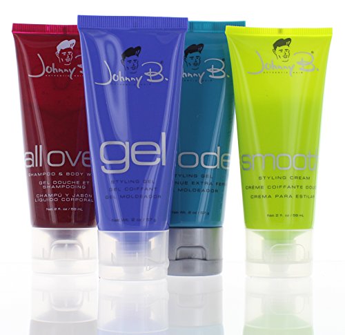 Johnny B Holiday Sampler- Smooth Styling Cream, Mode Styling Gel, Superhold Gel and a Free All Over Shampoo & Body Wash-2 oz each