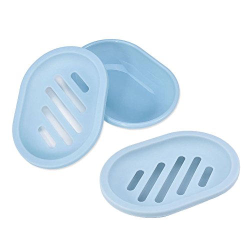 Soap Dish with Drain Soap Saver Soap Holder Soap Case Stop Mushy Soap 2 Pack Blue