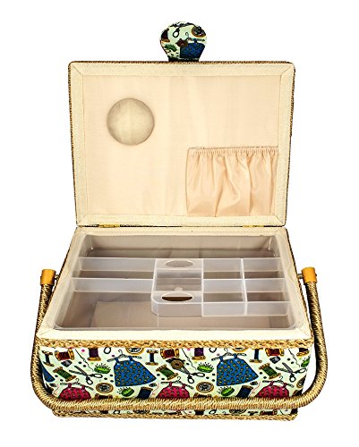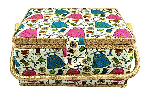 Large Fabric Covered Sewing Basket with Insert Tray and Accessories