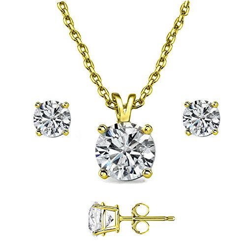 -. Feature : stunning combo deal 925 sterling silver gold overlay / 18 inch rolo chain flexible / 2.00 carat total weight stud earrings / 2.00 carat single solitaire pendant round