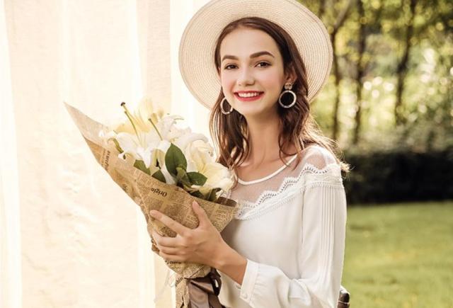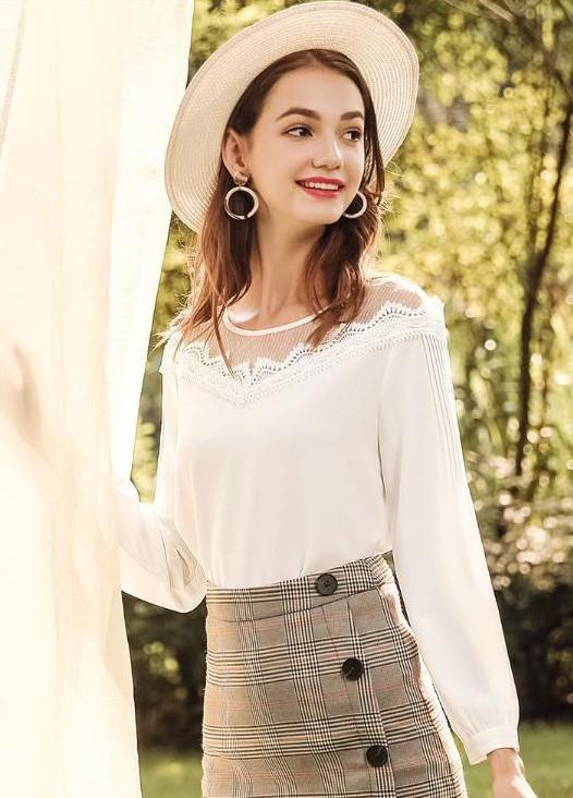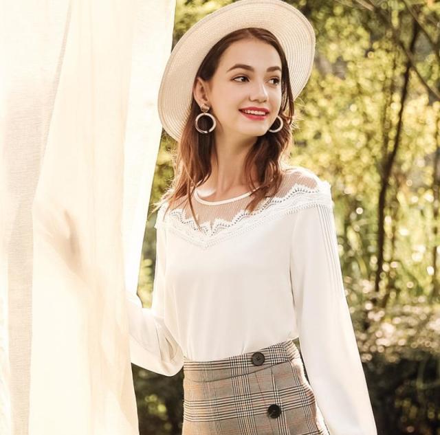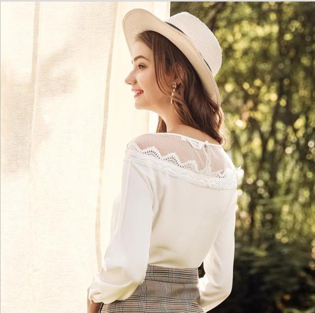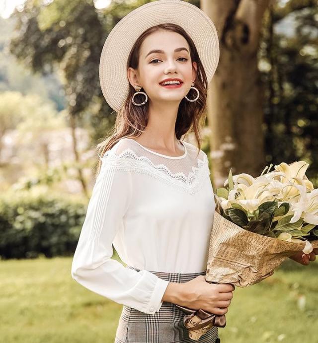・キーワード:リボン 可愛い ホワイト 長袖 2018年秋トレンド ブラウス