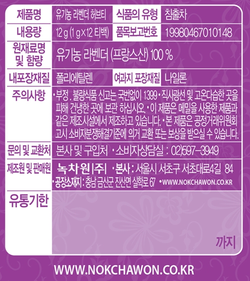 유기가공식품 인증번호 : 제94-8-12호