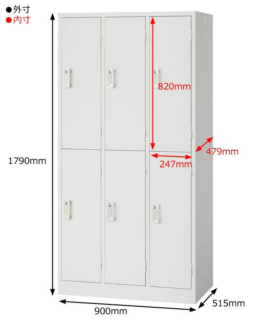 | 素材・材質 | 本体・扉:スチール製、粉体塗装(ホワイト色) 取手・開閉表示付きシリンダー錠:ABS樹脂(ホワイト色) |
