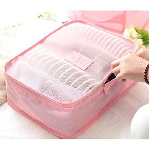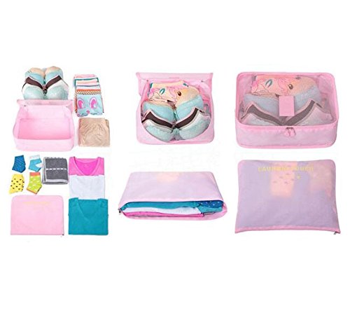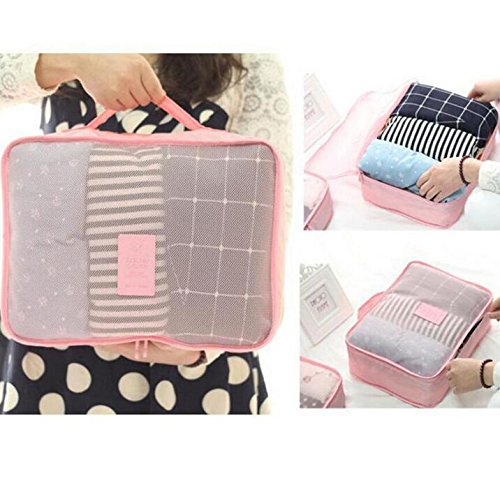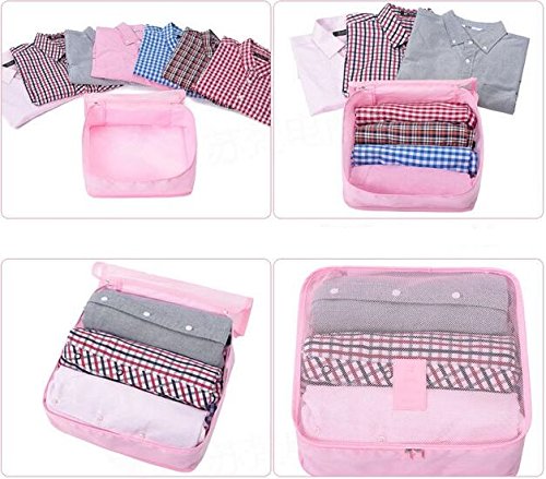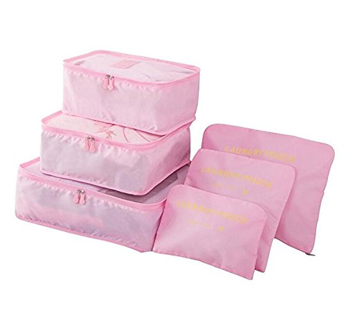6Pcs Waterproof Packing Pouch Clothes Storage Bag Portable Tote Cube Travel Luggage Organizer Doubtless Bay (pink)