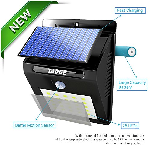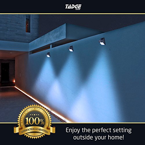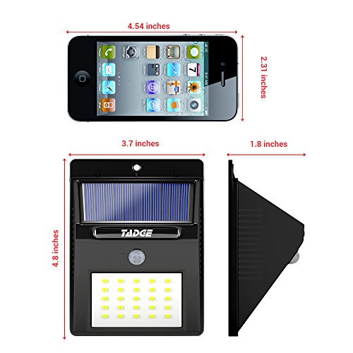 2017 NEWEST & BRIGHTEST!! - The brightest of its kind, with 25 LEDs, Tadge Goods solar outdoor patio deck lights are the best solar powered motion sensor lights on the market. Whether using for security or night time lighting, your super bright 4 pack lights come ready to use in heavy duty packaging.