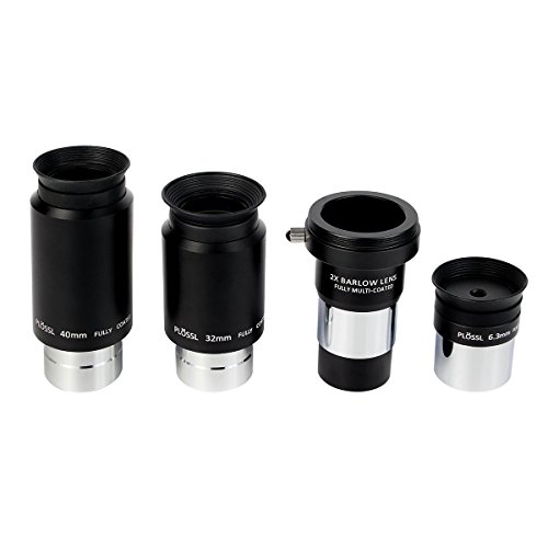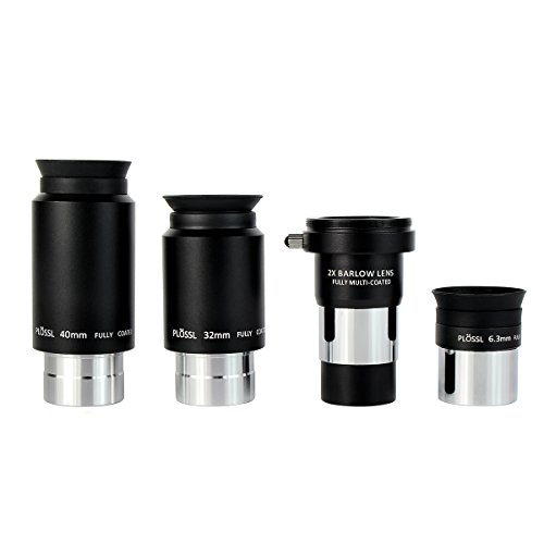 The 1.25" 6.3mm 32mm 40mm Plossl eyepiece set give you a good variation in magnification for a wide range of targets with extra sharpness and long eye relief
