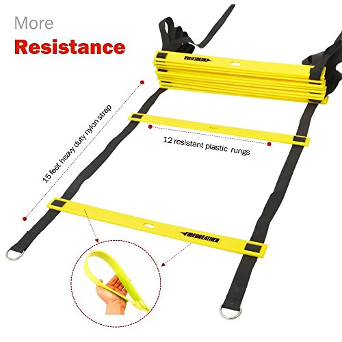 THE BEST VALUE FOR MONEY: This Top Quality Speed and Agility Training Equipment includes: 15 ft long / 12 Rungs Sports Ladder, 6 Agility Cones, 4 Pegs, a Nylon Carrying Bag & Training
