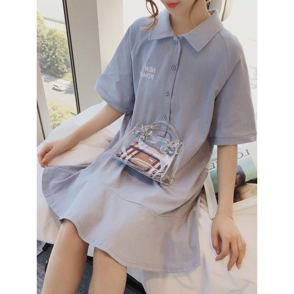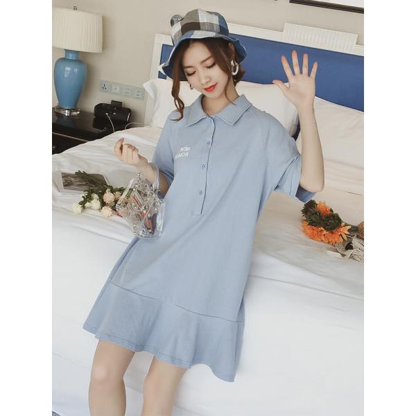 韓国風レトロでシックなポロシャツワンピース。