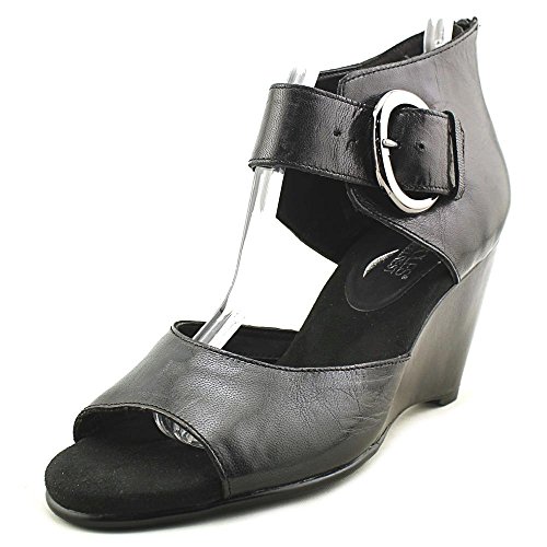 (Aerosoles)/Women's/Mules Clogs/DIRECT FROM USA/Aerosoles Sound System Women Open Toe Leather Black Wedge Heel
