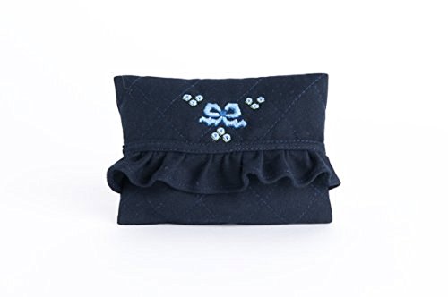 -. Title : 手刺繍【リボン・ブルー】 ティッシュケース 【2サイズ】 ポケットティッシュに 通園通学・お受験に 即日発送