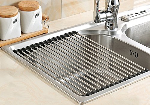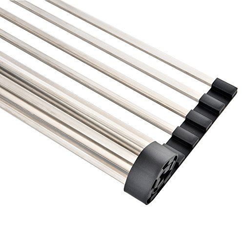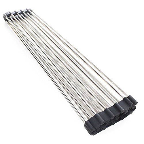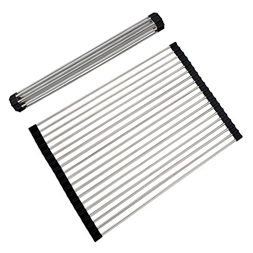Extra Large Roll-Up Dish Drying Rack,Stainless Steel Kitchen Over Sink Rack20.5" x 12.8",Black