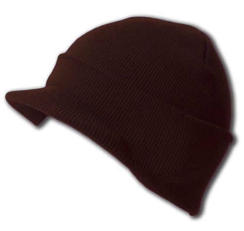 Knit Cuff Beanie Visor - Winter Wear/Sports - Brown