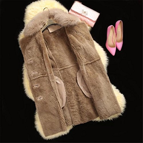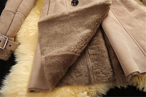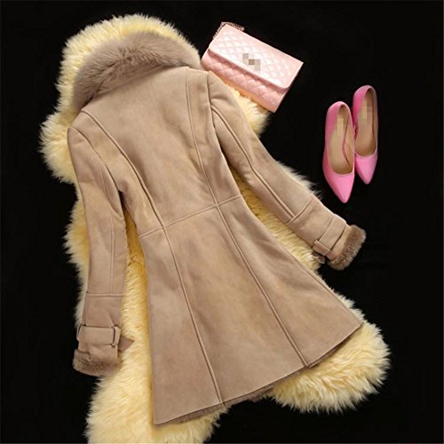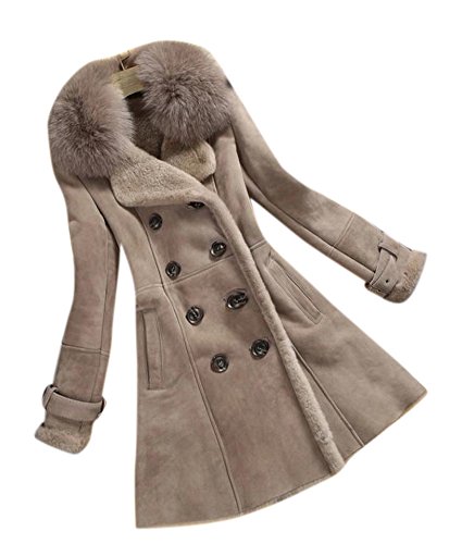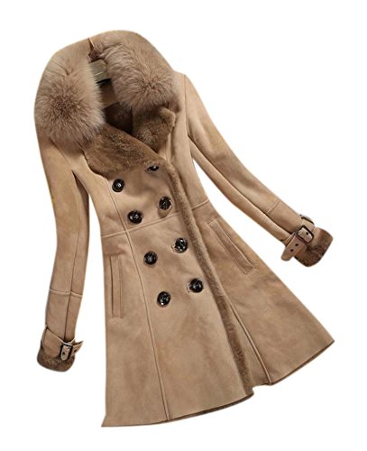 Allbebe Women's Winter Thicken Long Faux Fur Shearling Coat with Fox Fur Trim