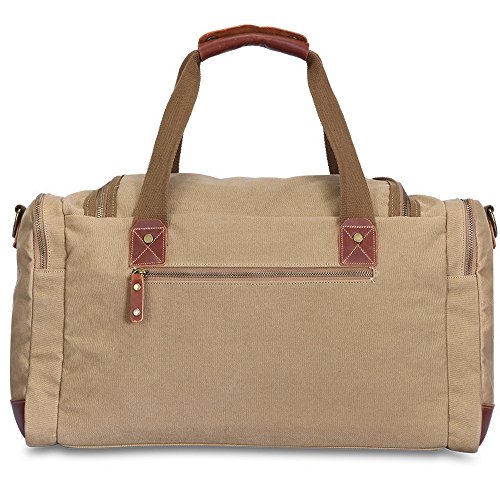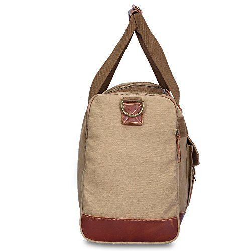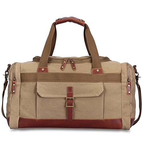 -. Brand : Kofuti -. Department : men,women -. Feature : Material:high quality conton canvas and authentic crazy-horse leather trims / Dimension:19" L x 13" H x 7.9"W,roomy main compartment,2.2 pounds weight / Adjustable and removable shoulder strap,top genunim crazy horse leather carrying handles / High quality zipper is smooth and durable with nice zipper pulls / Structure:1 front flap pocket,2 side zip pockets,1 back zip pocket,2 interior pen sleeve,2 interior slip pockets,1 interior zip pocket -. ProductGroup : Apparel -. ProductTypeName : LAGE -. Title : Kofuti Canvas Travel Tote Duffle Bag for Men and Women Weekend Bag Shoulder Bag