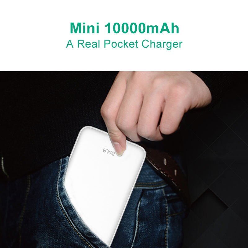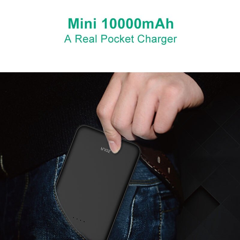 A Real Pocket Size Pwer Bank. It is incredible to squeeze long-lasting 10000mAh battery into such a small space, making it easily hold in your palm and slip into your bag or pocket.