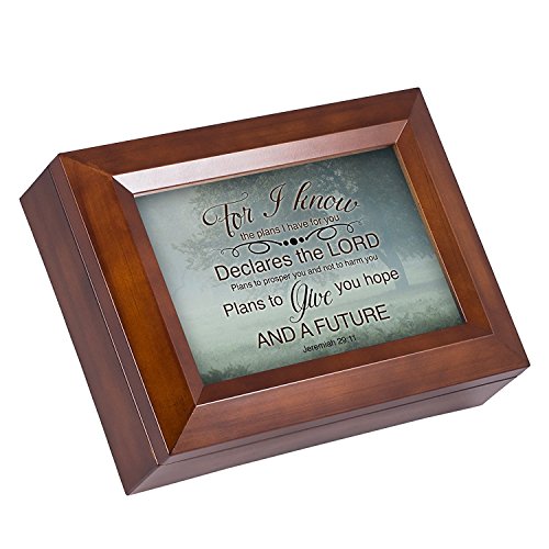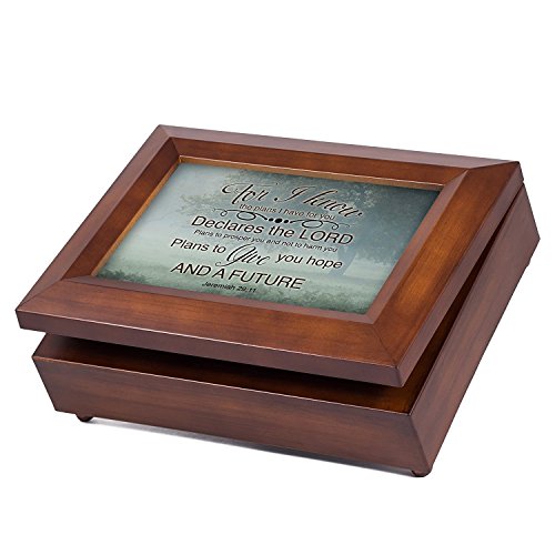 Misty Meadow Tree Jeremiah 29:11 Wood Finish Jewelry Music Box Plays Waltz of the Flowers