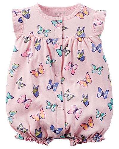 -. Feature : Short-sleeve romper with all over butterfly print and snap-front design / Nickel-free snap buttons in front / Flutter sleeves for extra flair / 100% cotton rib / Machine wash
