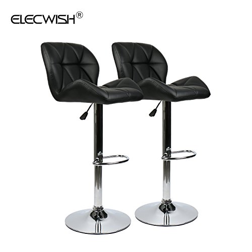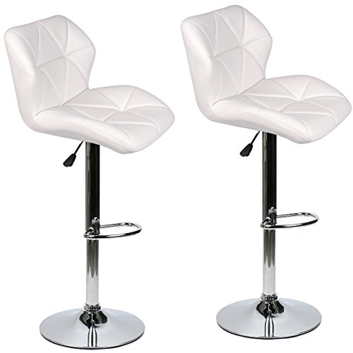 -. Title : ELECWISH Bar Stools Set of 2 White PU Leather Seat with Chrome Base Swivel Dining Chair Barstools