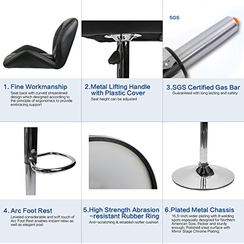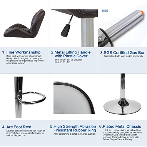 -. Feature : ★Bar Stools Set of 2--High quality PU leather seat, elastic and comfortable / ★Adjustable Bar Stools--Adjustable height:32-42 inch, suitable for different tables, counters / ★Swivel Bar Stools--Arc footrest enables relax as well as elegant post / ★Metal Bar Stools-Chrome finish base with anti-scratching rubber ring, protect your floor and away from noise / ★Outdoor Bar Stools-Seat back with curved streamlined design to provide embracing support, 100% Guaranteed