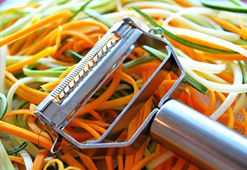 ★ FEEL THE PASSION in food making! This stylish, original, unique, comfortable to hold and exclusively designed premium Julienne peeler and Vegetable peeler with top quality stainless steel blades, not only fits perfectly with any kitchen décor, but also makes everyday cooking easy and fun. It is one more opportunity to express yourself!