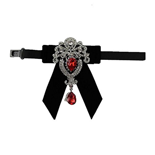 (BanWood)/Accessories/Ties/DIRECT FROM USA/BanWood Unisex Red Gemstone Pandent Collar Tie High-end Velvet Bow Tie (Black)