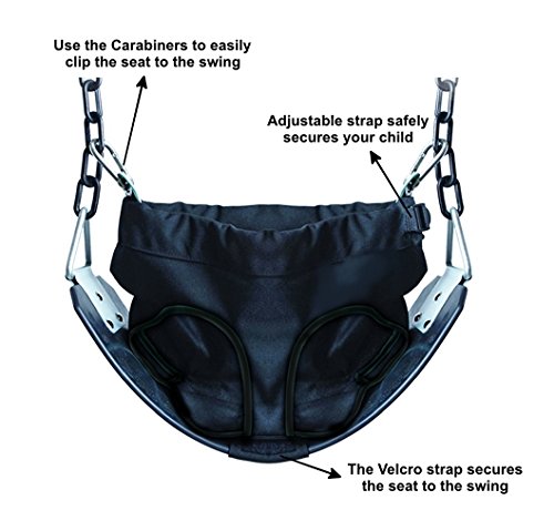 Studio : Thorium Publisher : Thorium Binding : Toy Product Description Thorium Portable Toddler Clip On Swing Seat complete with compact Travel Bag Are you struggling to keep your toddler or baby safely on the swing? If so, then we have the perfect solution for you! The Thorium Swing Seat easily converts a standard swing into a safe and comfortable swing for your child. Simply connect the Thorium Swing Seat to the existing swing by clipping on the carabiners to the chain and securing it at the bottom with the velcro strap. Your toddler or baby will be safely secured with support across the chest, back and under their arms. It has an adjustable strap, which allows you to safely secure your child in the swing seat. The Thorium Swing Seat features a carry bag for easy storage and makes this product compact and portable. Special Features: - Portable - Small enough to carry in your diaper bag, hand bag or stroller - Easy to use - Strong durable material - Washing machine friendly - Two carabiners supplied - Travel bag included - Suitable for children from 9-36 months with maximum weight of 30lbs - Adjustable straps for perfect fit Get your Thorium Swing Seat and Travel Bag today and start enjoying the playground with your toddler! 0