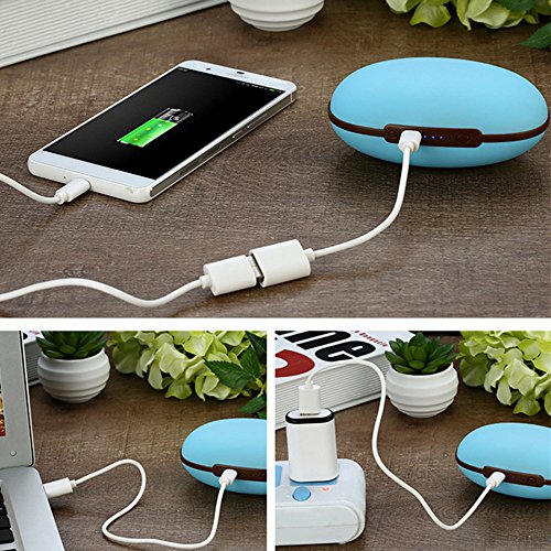 -. Feature : Peas shaped Hand warmer & power bank,easy carrying to anywhere,perfect for this cold winter. / Double-side pocket warmer fast heating up,adjustable 2 modes (Lowest 50°C,Highest 60°C) heat your hands in a suitable temperature,easy to turn on and off. / Slim and light weight design,making of high-tech aircraft-grade aluminum and ABS, eco-friendly Polymer battery. Shockproof, Anti-scald,Anti-skid, Explosion-proof, Radiation-free, Green and Healthy heat transfer. / High Capacity(5000mAH) USB rechargeable for you cell phone or Plate. / Package Include:1 X hand warmer& power bank + 1 X Micro USB cable + 1 X Instructions Manual + 1 X Strap +1 X Sleeve.