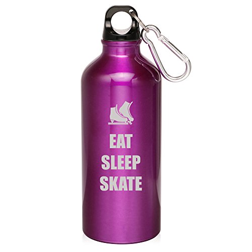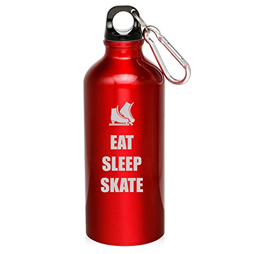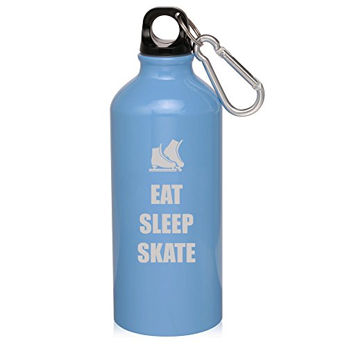 ()/Running/Water Bottles/DIRECT FROM USA/20oz Aluminum Sports Water Bottle Caribiner Clip Eat Sleep Skate Ice Skates